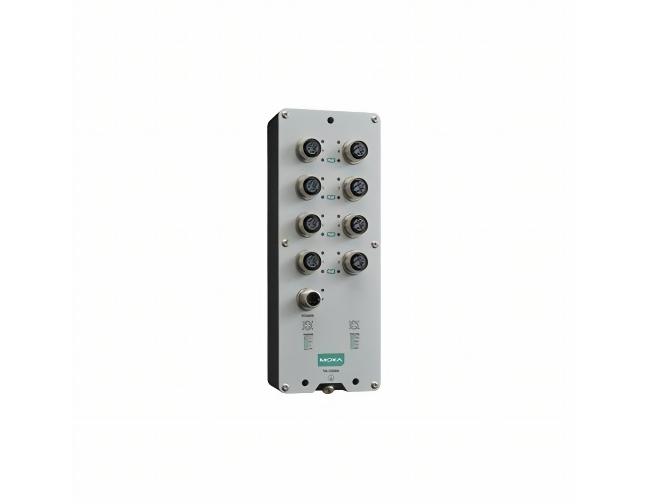 TN-5308A-8PoE-WV-CT-T - The ToughNet TN-5300A Series M12 unmanaged Ethernet switches are designed for industrial applications in harsh environments. The TN-5300A Series switches use M12 connectors to ensure tight, robust connections, and guarantee reliable resistance against environmental disturbances, such as vibration and shock. The TN-5300A Series Ethernet switches provide 5 or 8 Fast Ethernet M12 ports, support IEEE 802.3/802.3u/802.3x with 10/100M, full/half-duplex, MDI/MDI-X auto-sensing, and provide an economical solution for your industrial Ethernet network. All TN-5300A Series models support an extended operating temperature range of -40 to 70°C. The TN-5300A Series also comply with all mandatory requirements of the EN 50155 standard including operating temperature, power input voltage, surge, ESD, and vibration, making these switches suitable for rolling stock and a variety of other industrial applications. The TN-5300A Series features a single power input with overload, reverse polarity, and inrush current protection. Additionally, the TN-5308A PoE models provide 8 IEEE 802.3af/at compliant PoE ports. These switches are classified as power source equipment (PSE) and provide up to 30 watts of power per port and have a total power PoE budget of 50.2 Watts.