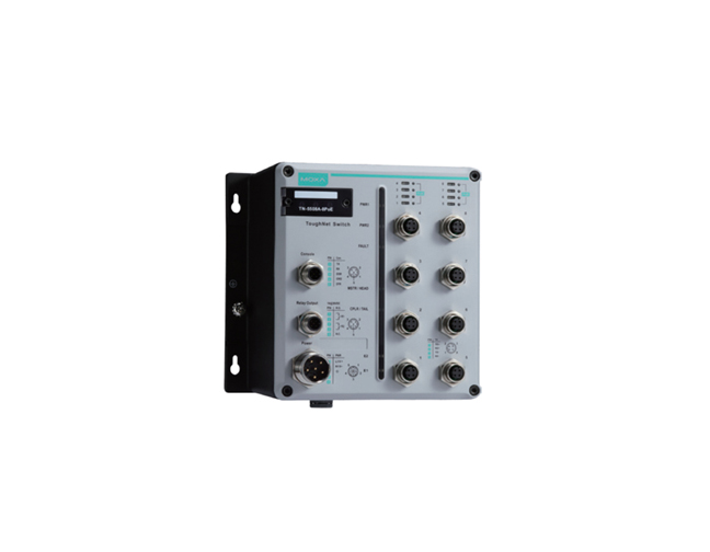 The ToughNet TN-5508A-8PoE series, TN-5508A-8PoE-WV-T, M12 managed Ethernet switches are designed for railway applications, including rolling stock and wayside installations. The switches use M12 and other circular connectors to ensure tight, robust connections, and guarantee reliable operation in industrial environments where vibration and shock are commonplace. The TN-5508A-8PoE series Ethernet switches have 8 Fast Ethernet M12 ports with 8 IEEE 802.3at/af compliant PoE (Power-over-Ethernet) ports. The PoE switches are classified as power source equipment (PSE); they provide up to 30 watts of power per port, and can be used to power IEEE 802.3at/af compliant powered devices (PDs), such as IP cameras, wireless access points, and IP phones. The 24 to 110 VDC wide power input range and isolated power inputs not only allow you to use the same type of power source at different sites around the globe, but also increase the reliability of your communications system. Furthermore, the -40 to 75°C operating temperature and IP54-rated waterproof enclosure allow deployment in harsh environments. The TN-5500A series Ethernet switches are compliant with mandatory sections of the EN 50155 standard covering operating temperature, power input voltage, surge, ESD, and vibration, as well as conformal coating and power insulation, making the switches suitable for a variety of industrial applications.