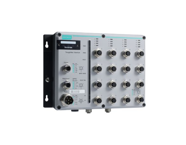 Moxa TN-5518A-2GTX-WV-T - L2 managed switch with 16 10/100BaseT(X) ports, and 2 10/100/1000BaseT(X) ports with M12 connectors, d by MOXA