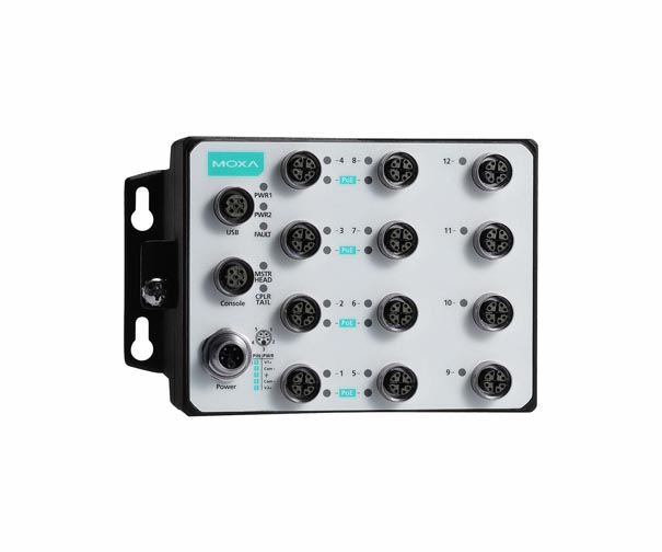 - 12 Gigabit ports with push-pull M12 connectors