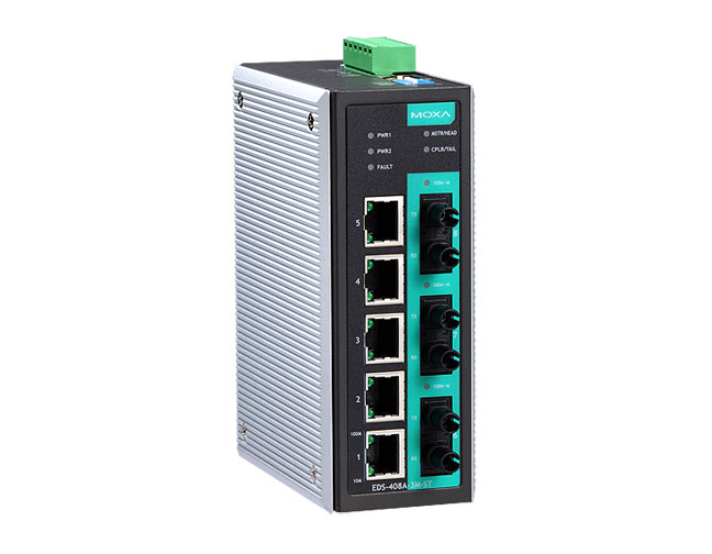 Moxa EDS-408A-3M-ST-T - Entry-level managed Ethernet switch with 5 10/100BaseT(X) ports, and 3 100BaseFX multi-mode ports with S by MOXA