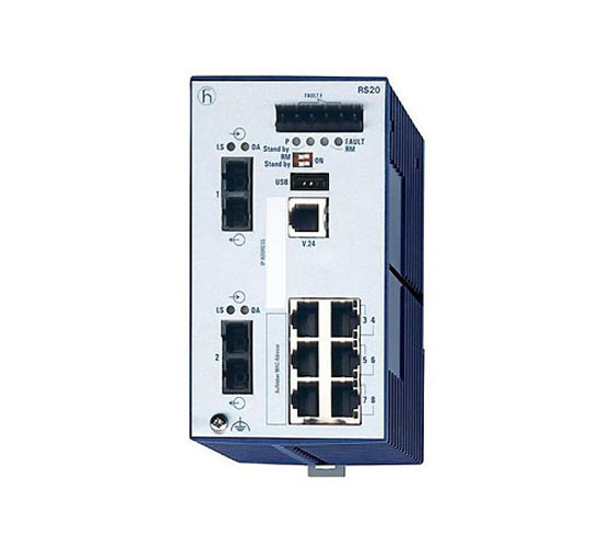 943434020 Hirschmann RS20-0800S2S2SDAP Mananaged Industrial Ethernet Rail Switch with 6 RJ45 Fast (100 Mbps) Copper Ports and 2 Fast (10/100) Fiber Single mode port with SC connection. Fanless Design and Software Layer 2 Professional.