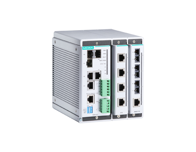 The versatile modular design of the compact EDS-611-T Ethernet switch allows users to combine fiber and copper modules to create switch solutions suitable for any automation network. The EDS-608’s modular design lets you install up to 3 Gigabit Ethernet ports and 16 Fast Ethernet ports, and the advanced Turbo Ring and Turbo Chain (recovery time < 20 ms) technology, RSTP/STP, and MSTP helps increase the reliability and availability of your industrial Ethernet network. Models with an extended operating temperature range of -40 to 75°C are also available. The EDS-608 supports several reliable and intelligent functions, including IEEE 1588 PTPv2, EtherNet/IP, Modbus/TCP, LLDP, DHCP Option 82, SNMP Inform, QoS, IGMP snooping, VLAN, TACACS+, IEEE 802.1X, HTTPS, SSH, SNMPv3, and more, making the EDS-608 Ethernet switches suitable for any harsh industrial environment.