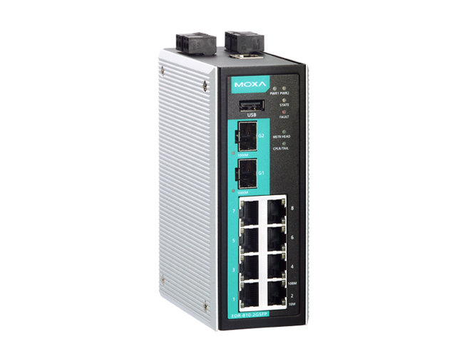 Moxa EDR-810-2GSFP-T - Industrial Secure Router Switch with 8 10/100BaseT(X) ports, 2 1000Base Gigabit SFP slots, 1 WAN, Firewal by MOXA