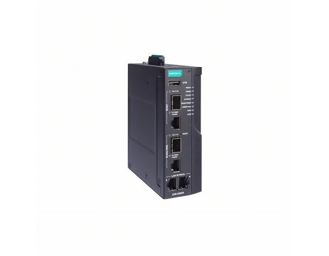 Moxa EDR-G9004-VPN-2MGTXSFP-CT - Industrial secure router with 2 Gigabit copper ports with Gen3 Bypass, 2 Gigabit copper/SFP