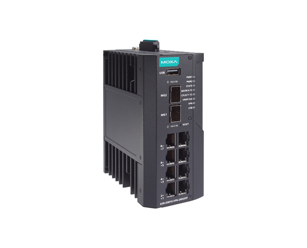 Moxa EDR-G9010-VPN-2MGSFP-CT - 8 GbE copper + 2 GbE SFP multiport industrial secure router with firewall/NAT