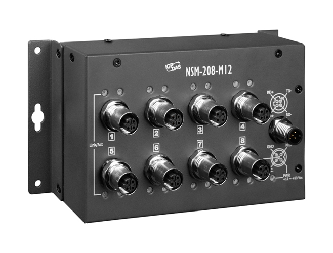 ICP DAS NSM-208-M12 - EN50115 8 Port with M12 connectors Ethernet Switch by ICP DAS