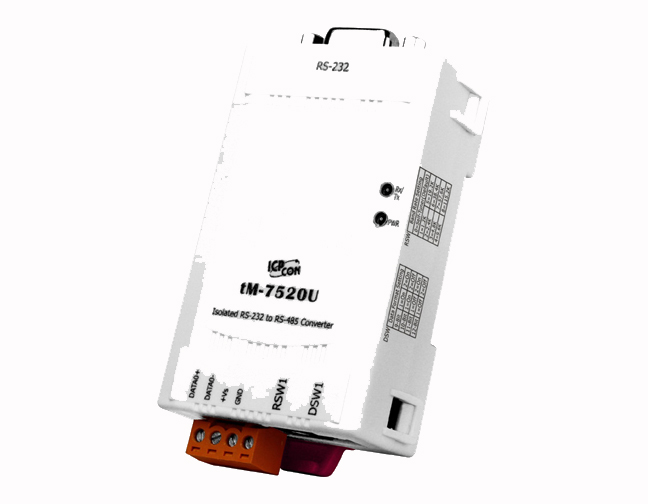 Most industrial computer systems provide standard RS-232 serial ports with limited transmission speed, range, and networking capabilities. The RS-485 standards overcome these limitations by using differential voltage lines for data and control signals. The tM-7520U transparently converts RS-232 signals into isolated RS-485 signal with no need to change any hardware or software. This lets you easily build an industrial grade, long-distance communication system using standard PC hardware. The module provides 2500 VDC of optical isolation allowing you to separate and protect critical segments of the system from the rest of the RS-485 network.