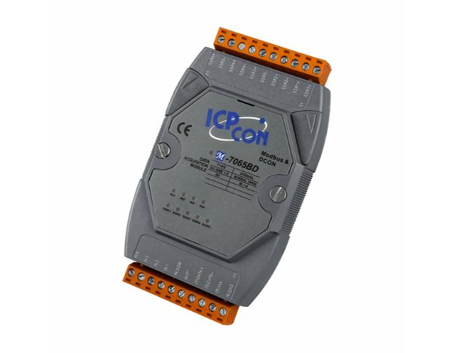 ICP DAS M-7065BD - 4-ch Isolated DI (Wet, 4~30 VDC) and 5-ch DC-SSR Output Module with LED Display by ICP DAS
