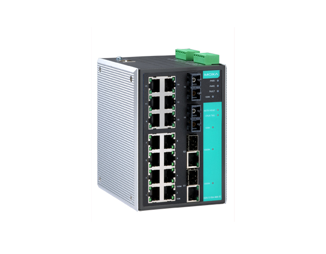 Moxa EDS-518A-MM-SC-T - Managed Gigabit Ethernet switch with 14 10/100BaseT(X) ports, 2 100BaseFX multi-mode ports with SC conne by MOXA