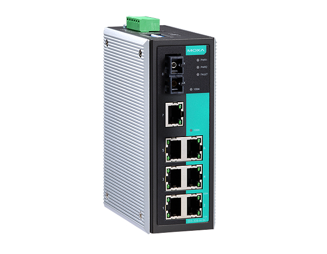Moxa EDS-308-S-SC-T - Industrial Unmanaged Ethernet Switch with 7 10/100BaseT(X) ports, 1 single mode 100BaseFX port, SC connect by MOXA