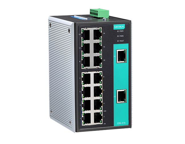 Moxa EDS-316-T - Industrial Unmanaged Ethernet Switch with 16 10/100BaseT(X) ports, -40 to 75  Degree C by MOXA