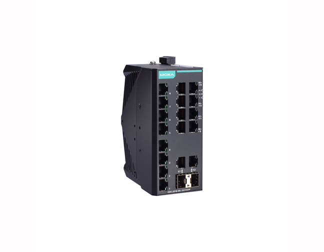 EDS-2018-ML-2GTXSFP-T of industrial Ethernet switches have sixteen 10/100M copper ports and two 10/100/1000BaseT(X) or 100/1000BaseSFP combo ports, which are ideal for applications that require high-bandwidth data convergence. Moreover, to provide greater versatility for use with applications from different industries, the EDS-2018-ML Series also allows users to enable or disable the Quality of Service (QoS) function, broadcast storm protection, and port break alarm function with DIP switches on the outer panel.