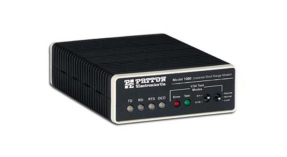 The Patton Model 1080A-EUI AC Powered, Universal Short Range Modem is the bread and butter of our RS-232 short haul line, and it's now tastier than ever! Recent improvements in the Model 1080A include better distances (up to 17 miles [27.4Km] on one or two unconditioned twisted pair), support for higher data rates (up to 57.6 kbps), and the addition of a built-in V.52 BER test pattern generator.Of course, the Model 1080A retains all the features that you have already come to expect: asynchronous or synchronous RS-232 operation, half duplex communication over two wires or a choice of half or full duplex communication over four wires, support for point-to-point or multipoint applications, and fully compliant V.54 test modes (local analog loop and remote digital loop).