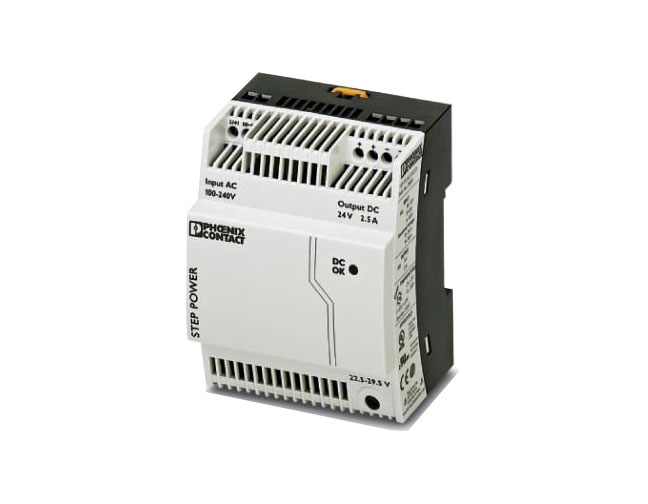28686518 STEP-PS/1AC/24DC/2.5 Power Supply of the STEP-PS/1AC/24DC/2.5 Industrial Power Supply is a rugged AC to DC and DC to DC Converter built to meet the high stability and efficiency expectations of industrial, machine automation and process control environments. With its low-profile design, this STEP power supply is ideal for building automation, installation distributors and flat control panels. This Switching (switch mode) Power Supply ensures a regulated output voltage even in the event of voltage fluctuations in the power supply network. With all required safety certifications to support ITE (Information Technology Equipment), ruggedized packaging, extended operating temperatures, high peak load capabilities and high isolation voltages, this STEP Industrial Power Supply is designed to meet the needs of your industrial application.
