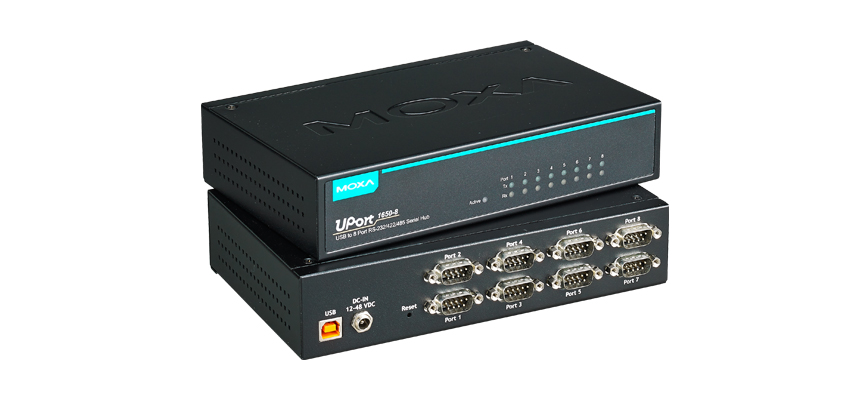 The UPort® 1600-8 USB-to-serial converters, UPort 1650-8, allow you to connect 8 RS-232 or RS-232/422/485 devices to your laptop or workstation through the USB (Universal Serial Bus) port. The UPort® 1600-8 converters are compatible with new and legacy serial devices, and are perfect for instrumentation and manufacturing applications.