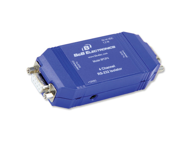 The 9POP4 isolates and protects RS-232 equipment from lightning surges, accidental high voltage shorts, and ground loops. RS-232 data signals TD, RD, RTS, and CTS are supported at up to 230.4 kbps. Isolation circuits are 2.5 kV rated and protects valuable equipment while maintaining maximum uptime.