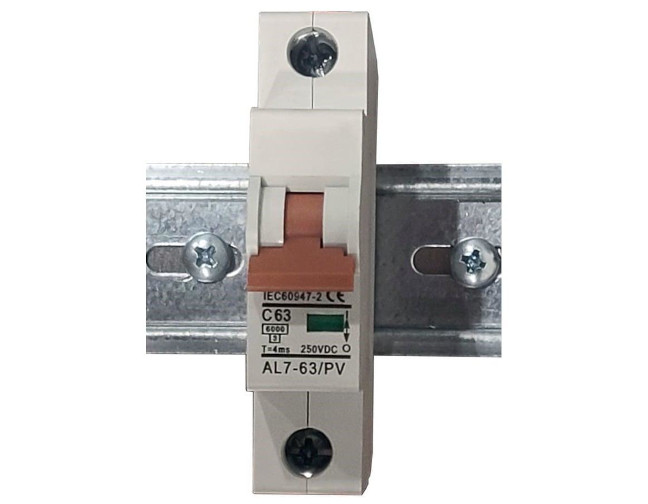 The Tycon Solar® TPDIN-CB-63A is DIN Rail mount miniature circuit breaker designed for DC systems such as remote power and solar systems. With its 250V and 63A trip point these will find many uses in battery and solar panel disconnect switches in addition to overload protection.