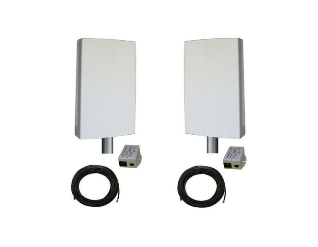 The EZ-BridgeLT2+HD comes complete with all the electronics that are needed for a point to point wireless network bridge installation; including 2 powerful 14dBi MIMO antennas with built-in 802.11bgn high power electronics, Bracket Kits which accommodate pole or wall mounting, Two 75' shielded and outdoor rated CAT5 cable assemblies and two Autoranging PoE Inserters with built in surge protection on the Ethernet data and power lines. Customer needs to supply CAT5 cabling between the PoE Inserter and the router, switch or computer.